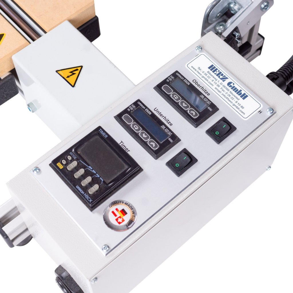 Stolní nahřívací lišta TGmO je stejné konstrukce jako lišta typu TG, ale díky oboustrannému ohřevu je schopna flexibilně ohřívat desky až do tloušťky 12 mm.