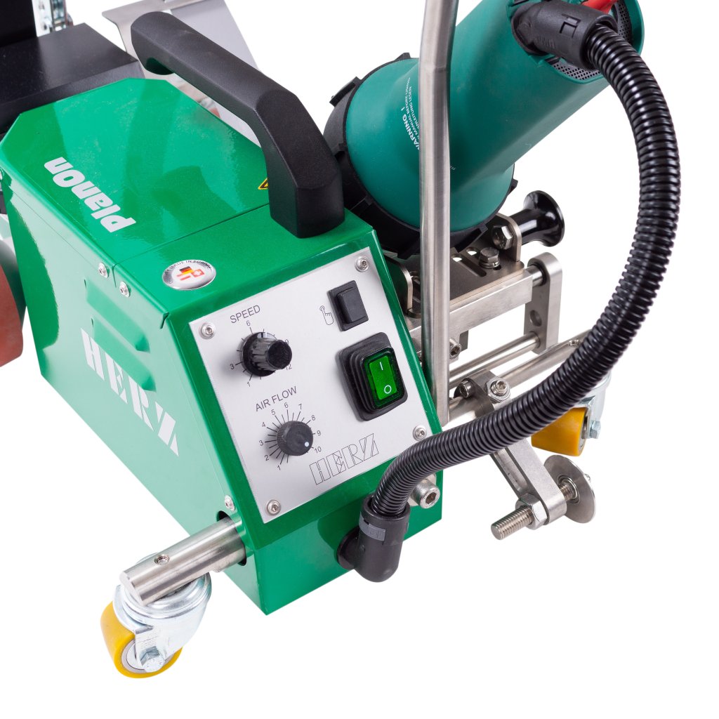 Svařovací automat HERZ RoofOn 230V/ 3,5kW pro ploché střechy a spodní izolace s pevným podkladem. Šířka svařovaného prostoru je 40mm.